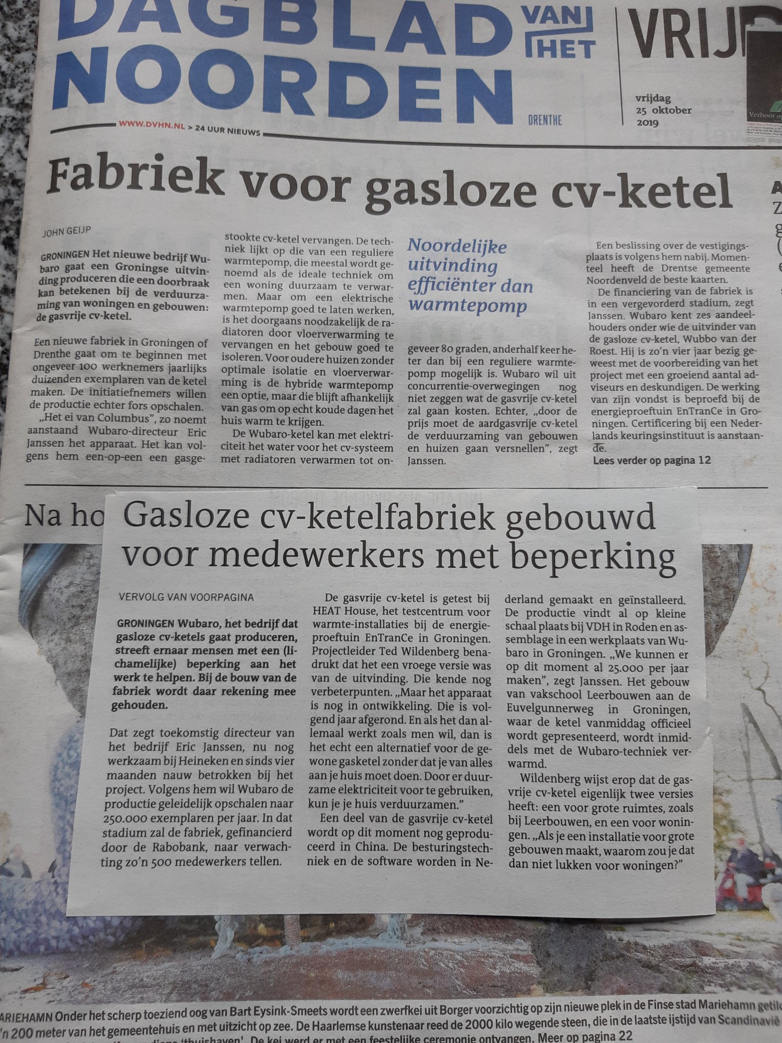 Noordelijke uitvinding efficiënter dan waterpomphet nieuwe bedrijf wubaro gaat een groningse uitvinding produceren die een doorbraak kan betekenen bij de verduurzaming van woningen en gebouwen. Drentse fabriek voor gasloze cv ketel een groningse uitvinding is in zicht.