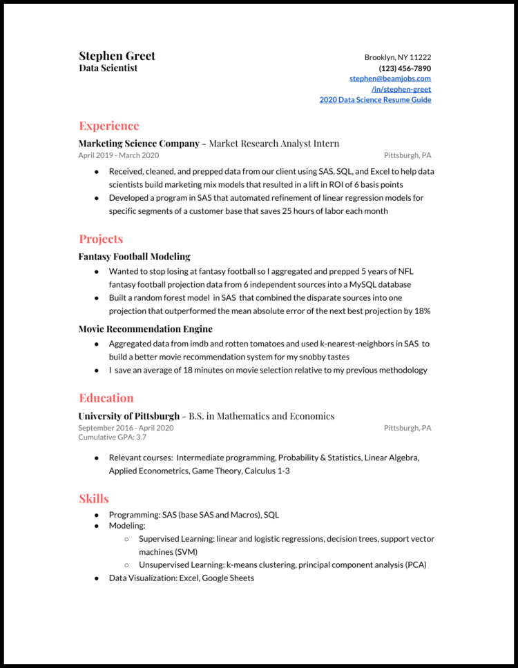Junior data scientist resume. Always read the job post clearly. Across private and public sectors from fraud detection to cancer research to national intelligence you know the answers are in the datawe have an opportunity for you to use your analytical skills to improve a joint combatant command. This guide will show you. 4569 larsson drive tucson az 8975 480 239 2390. The guide to resume tailoring. The data scientist resume objective that we made is straightforward.