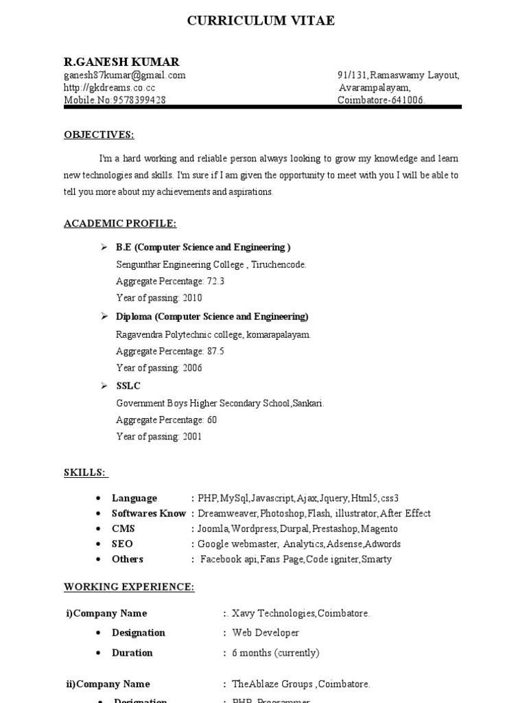 Produced project status reports managed the team and resolved day to day issues. The third is a full stack developer resume with 5 years of experience and has a resume summary in it. 3 years of experience as web developer. Assisted the main us lead on 22m project. Email protected contact no9854658210 addresschennai objective seeking a challenging opportunity in softwaremaintenance in it. Sample template example of it engineer with 1 year work experience cv format with career objective work summary in india in word doc pdf free download.
