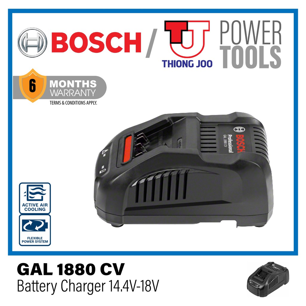 The bosch gal1880cv battery charger is the multi voltage quick charger for all bosch blue professional lithium ion batteries from 144 to 18 volts. Gal 3680 cv gal 3680 cv professional. With an impressive approximate charge time between 30 50 minutes depending on battery size. The gal 1880 is intelligent identifying the voltage ah temperature and charge level of each battery inserted. Free shipping for many products. 40 ah battery is ready to use with 80 of its capacity after only 25 mins.